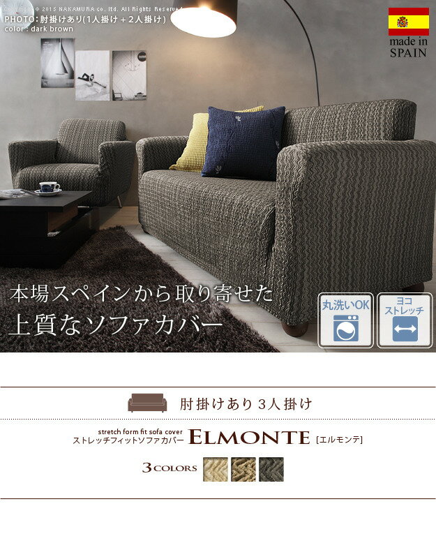 ジェンコ 送料無料 サイズ 幅 高さ 奥行 W D H cm cm 付き つき 無し なし 縦型 横型 北欧 モダン 家具 インテリア ナチュラル テイスト シンプル オススメ おすすめ おしゃれ かわいい 可愛い 用 新生活 後払い ソファ ソファー ソファカバー ソファーカバー 3人掛け用 3P トリプル 三人掛け さんにん掛け 三人がけ 3人がけ 肘 ハイバック カバーリング 洗える 洗濯可能 洗い替え ストレッチ インテリア雑貨 おしゃれソファカバー 3人掛け ソファカバー 2人掛け ソファカバー デニム ソファカバー 肘なし ソファカバー 撥水 ソファカバー 1人掛け ソファカバー 中掛け ソファカバー ソファカバー 3人掛け ハイバック ソファカバー 北欧 ソファカバー 毛玉になりにく ソファカバー 肘つき 高さ90 3人掛け ソファー 3人掛け ソファーカバー 肘付き 3人掛け ローソファー 3人掛けソファ 3人掛け ソファー レザー 3人掛けソファ 広い 3人掛け コーナーソファー 3人掛け ソファカバー■スペイン製ストレッチフィットソファカバー エルモンテ 肘掛け付き3人掛け用 mu-61000729商品詳細商品説明【カラーバリエーション】ダークブラウン・ライトブラウン・キャメルベージュ【仕様】綿47%、ポリエステル30%、アクリル20%、ポリウレタン3%【サイズ】適合ソファ:座面幅120〜170cm・高さ90cmまで※奥行の目安は85cm程度ですが、ソファの高さと座面幅のバランスによって異なります。