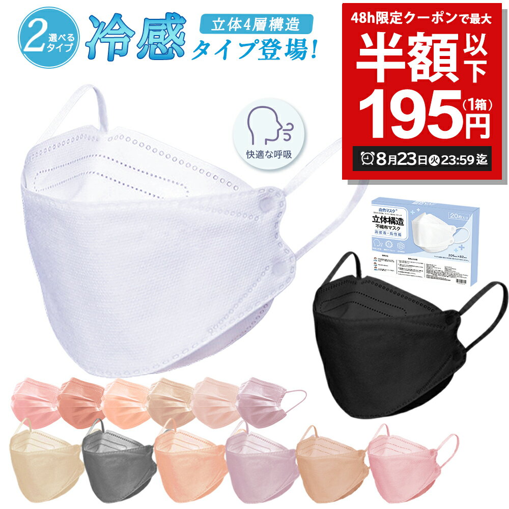 \48時間限り!/【先着限定クーポンで最大1箱195円】8/23 23:59迄☆ マスク 立体マスク 20枚 4層構造 50枚 +1枚 冷感マスク 不織布 接触冷感 血色マスク 3Dマスク カラーマスク 立体 子供用 小さめ マスク 耳が痛くならない cicibella 送料無料