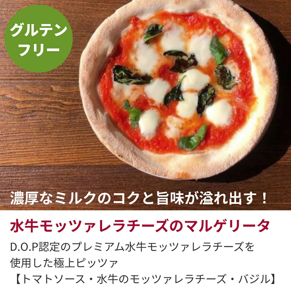 きっと満足していただけること間違いなし!〜セット内容〜水牛モッツァレラチーズのマルゲリータ × 1なすとピリ辛サラミ × 1水牛モッツァレラチーズの黄金マルゲリータ × 1九条ねぎと釜揚げしらすのマリナーラ × 1クアトロフォルマッジ × 1《2セット以上ご購入のお客様にマリナーラ1枚プレゼント!!》・水牛モッツァレラチーズのマルゲリータ…D.O.P認定のプレミアム水牛モッツァレラチーズを使用したワンランク上の贅沢なマルゲリータ。