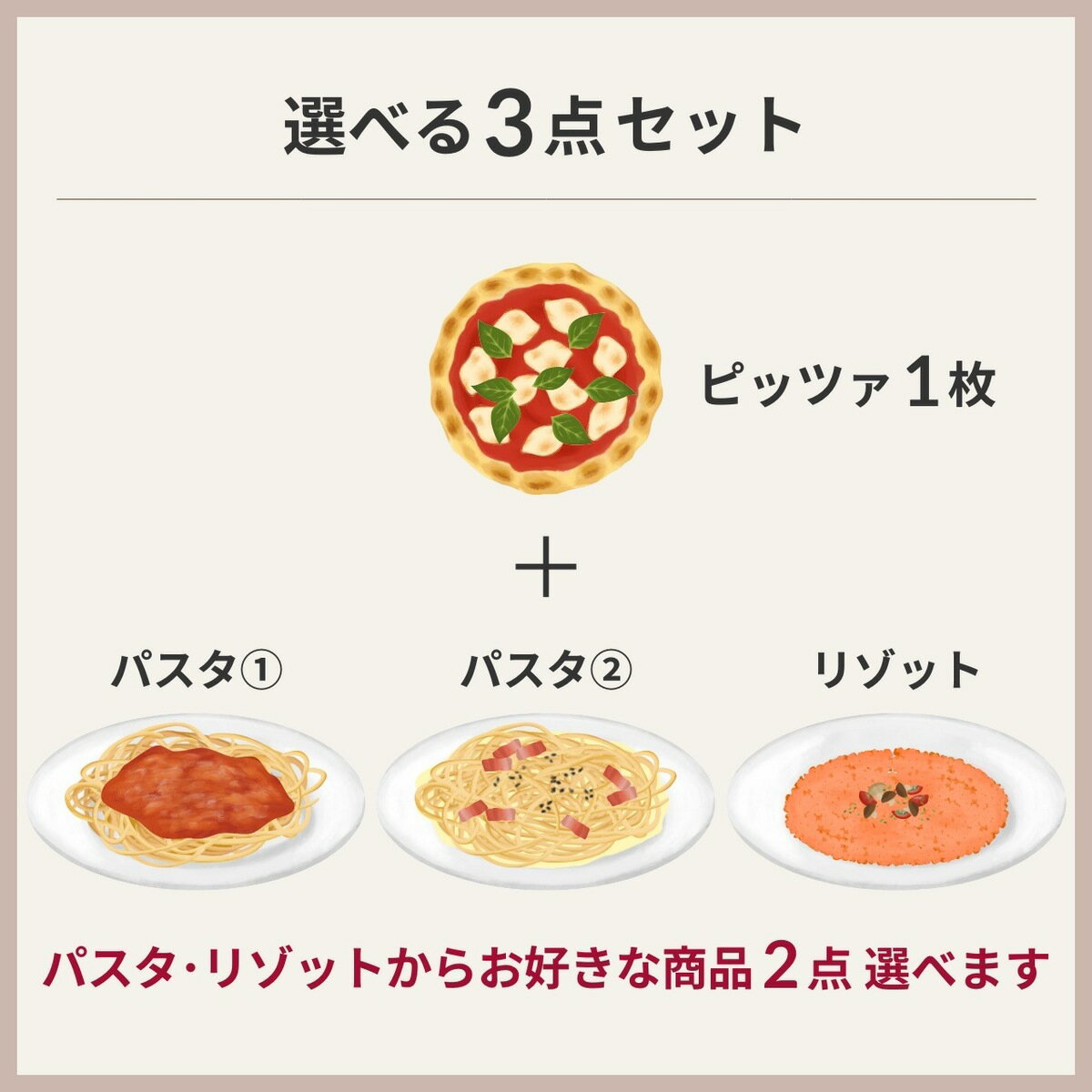 商品情報名称【選べる3点セット】夏限定グルテンフリーピッツァとパスタorリゾット内容量ピッツァ約21cm × 1枚☆