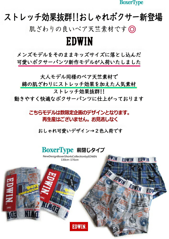 ■ EDWIN エドウィン キッズ ボクサーパンツ ■ 皆様から大好評!!!BOY'Sボクサーショーツ 最新モデルが入荷いたしました。