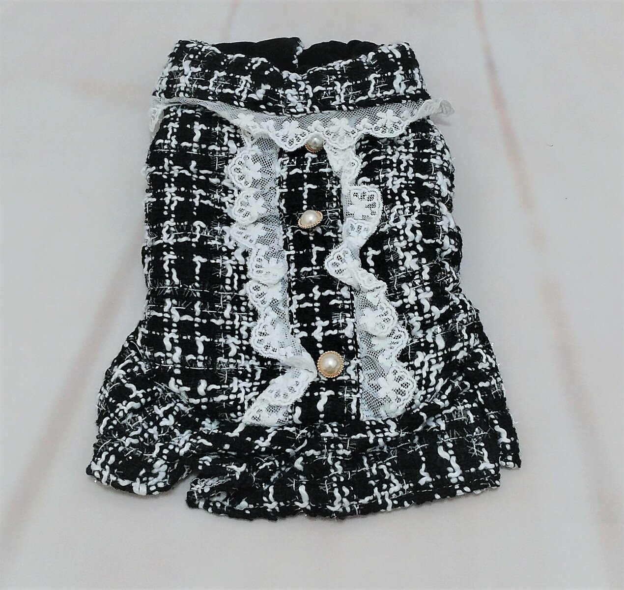 ペット 犬 犬服 犬の服 小型犬 ワンピース 秋冬 ツイードブラックワンピース