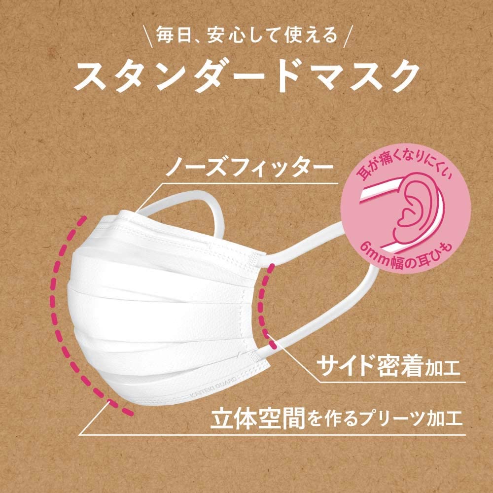 ●耳が痛くなりにくい6mm幅の耳ひも●口もと快適 やわらか素材 なめらかな肌触りで、心地よい使用感です。