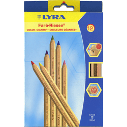 【名入れ無料】軽いなめらかな書き心地! LYRA カラージャイアント白木六角軸色鉛筆12色