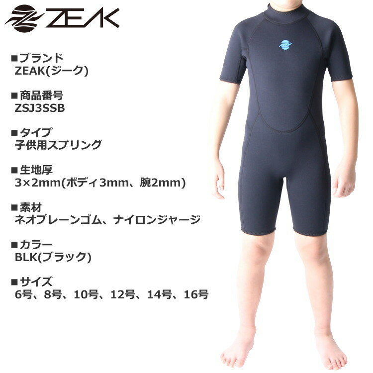 ZEAK(ジーク) ウェットスーツ 子供用 スプリング (3×2mm) ウエットスーツ サーフィン ウエットスーツ ZEAK WETSUITS