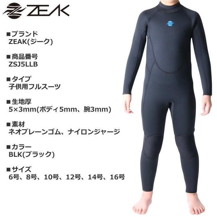 ZEAK(ジーク) ウェットスーツ 子供用 フルスーツ (5×3mm) ウエットスーツ サーフィン ウエットスーツ ZEAK WETSUITS