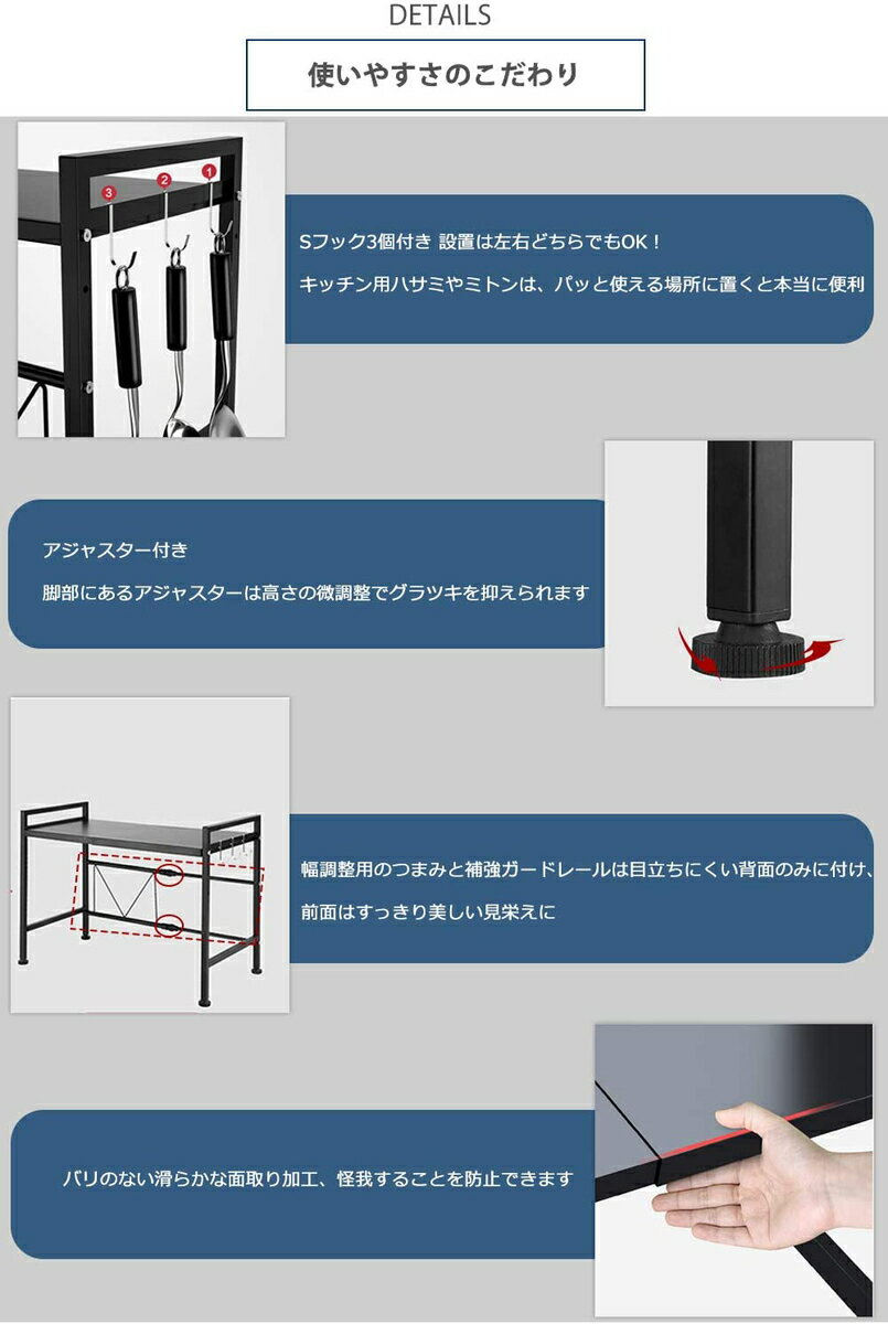 幅が高さも変えられ、アレンジ自在 高耐荷重·頑丈設計&粉体塗装 Sフック付き&アジャスター付き 様々な小物を収納したい方に シンクを整理できるラックが欲しい方に おしゃれで個性なアイテムで新居を装飾したい方に いつもお世話になっております。