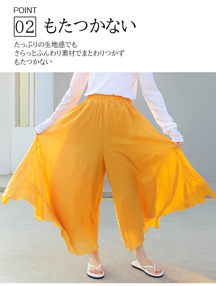 一見スカートを穿いていると思うくらいのたっぷりワイドなシルエットで、体型カバーもばっちり♪